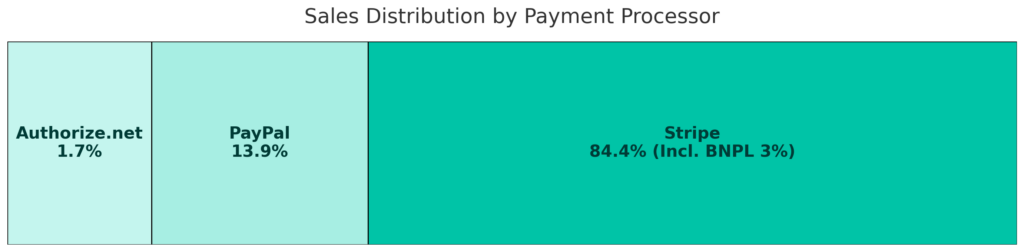 - Stripe drove most high-value and international purchases