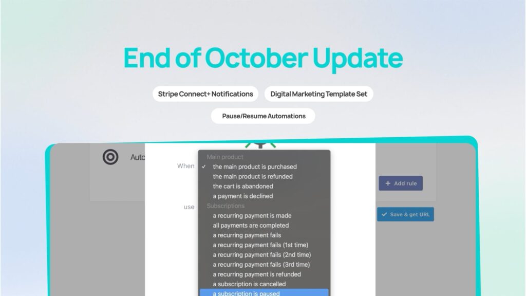 ToggleThis week’s release focuses on visibility, automation, and design. From in-dashboard Stripe alerts that help you stay compliant, to smarter behavior rules for subscription management, and a brand-new Digital Marketing template, these updates give you more control and more ways to grow, without leaving ThriveCart. Every change is built to reduce friction, simplify operations, and keep your business running smoothly.