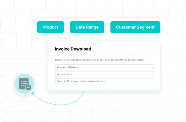 Instead of pulling each invoice separately, ThriveCart lets you grab them all at once. Just filter by product, date range, or customer segment, and you’ll instantly have the full set of invoices you need.