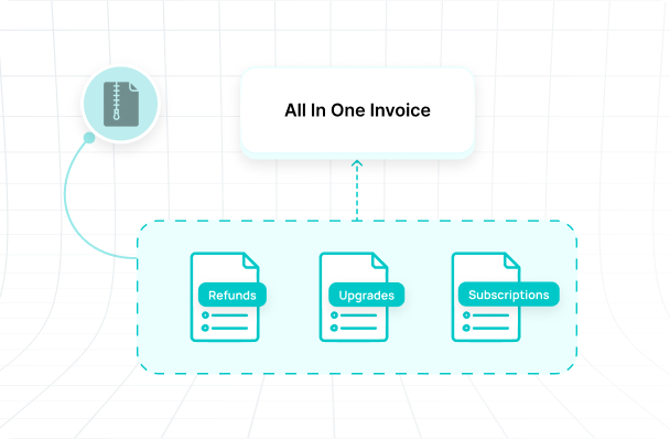Invoices from subscriptions, upgrades, and refunds are automatically included, so you can see every charge and adjustment without digging through multiple systems.