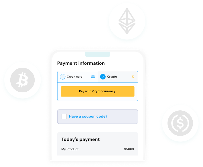 Enable crypto payments in seconds and start accepting Bitcoin, Ethereum, USDC, and other major coins right from your ThriveCart checkout. With Pro+ you can tap into new market segments and drive up to a 7% uplift in sales with no clunky gateways, hidden fees, or coding required.